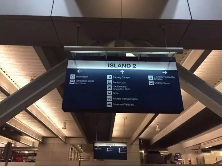 波特兰机场的候车点分为 Island 1/ 2/ 3,通往学校的大巴在 Island 2乘坐(如图)