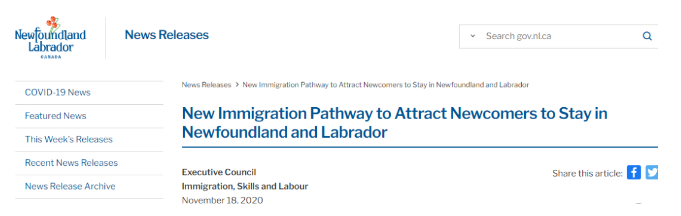 11月24日,纽芬兰与拉布拉多省也应势宣布将于2021年1月开启新的移民途径--优先技能移民,来吸引高学历、高技能的新移民以及已经在该省的新移民留下来。