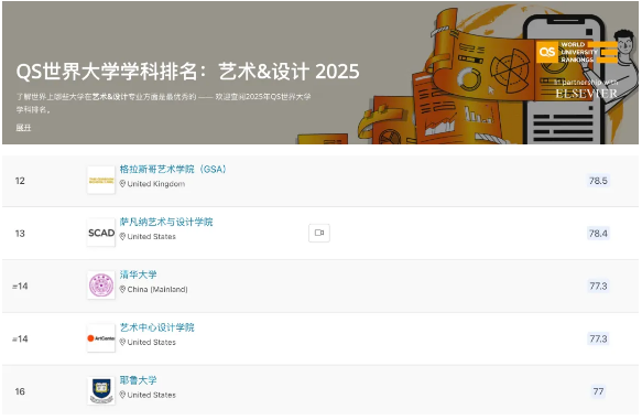 2025QS世界大学学科排名:艺术&设计