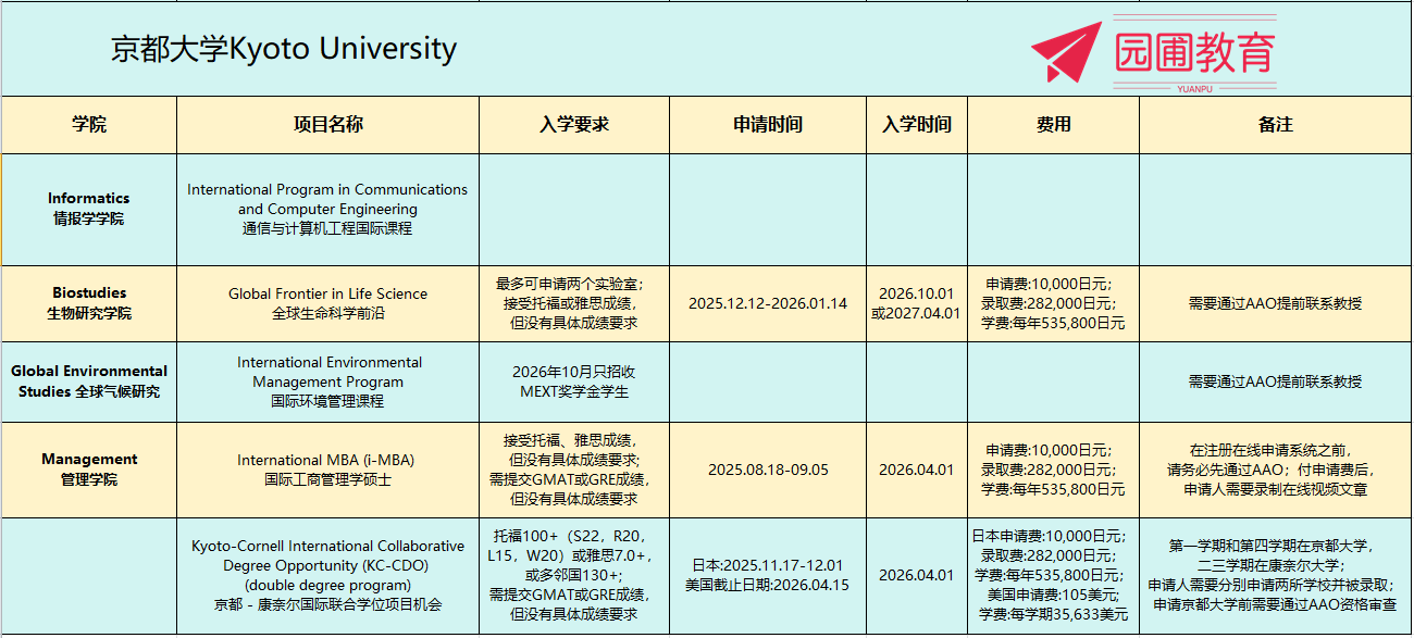 京都大学为国际学生提供多种学位课程,包括以下列出的全部英语授课课程。入学考试、评估报告及相关支持均以英语提供,使无日语能力的学生也能在享受大学世界级科研设施和教育的同时攻读学位。