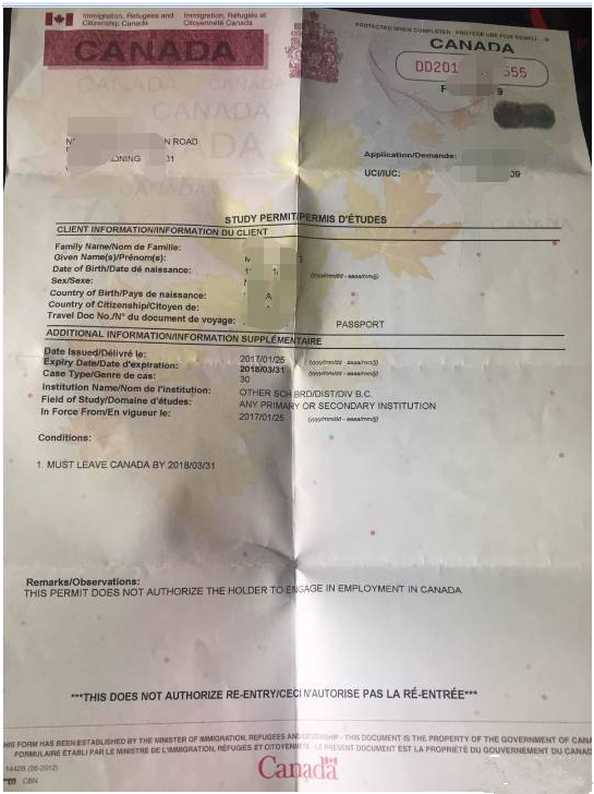 加拿大学生签证:在同学们获得了通知书之后,我们递交的签证申请,下签之后贴在护照上面的签证,日后我们叫做学生签(如图1所示)。学生签是出入境加拿大的有效证件。学生签必须在有效期间内,才可以入境加拿大。学生签如果过期,是可以出境加拿大的,但是无法入境。所以同学们出境之前要确认一下,自己的学生签是否过期,考虑回国呆的时间够不够续学生签(一般国内审理速度是2周),如果不够,请在境内续签完成后再回国,以免影响日后入境加拿大。