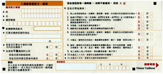 澳洲的入境卡中文版↓