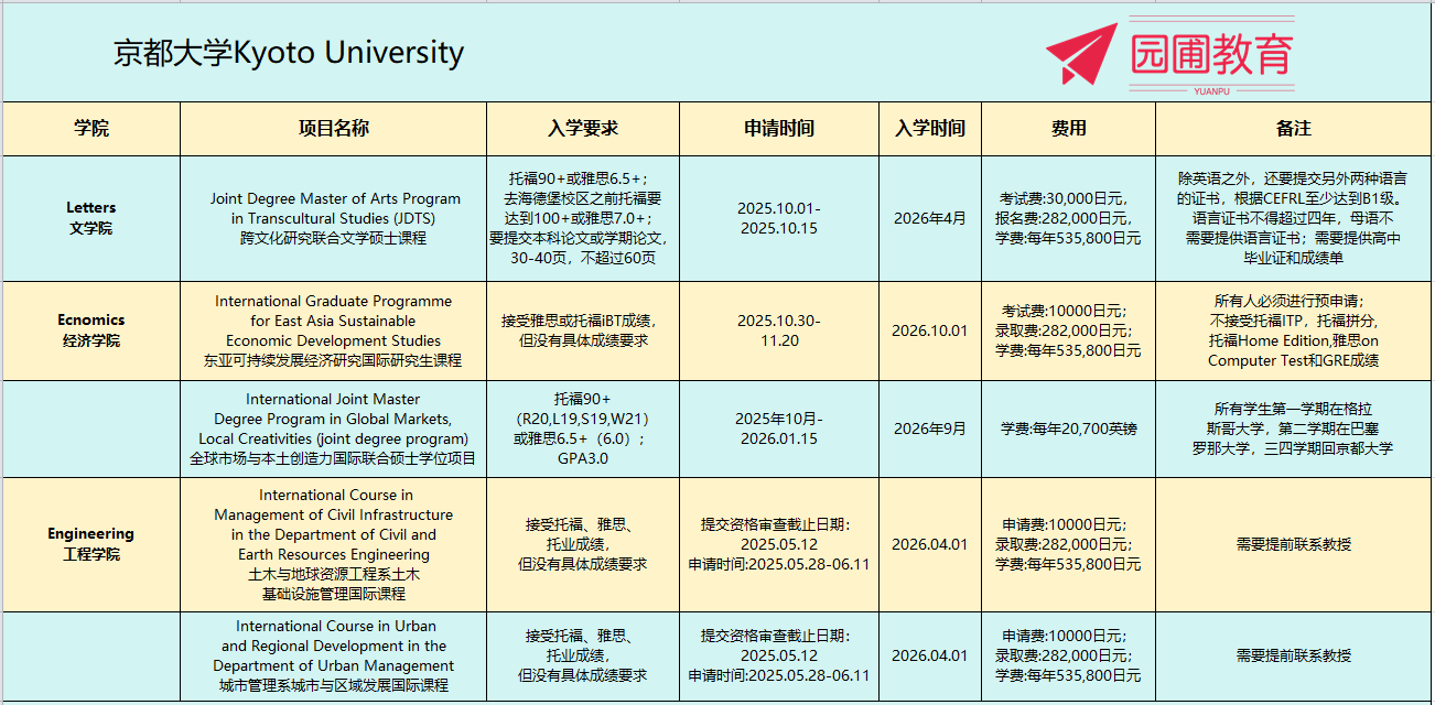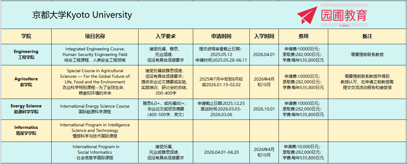 京都大学为国际学生提供多种学位课程,包括以下列出的全部英语授课课程。入学考试、评估报告及相关支持均以英语提供,使无日语能力的学生也能在享受大学世界级科研设施和教育的同时攻读学位。