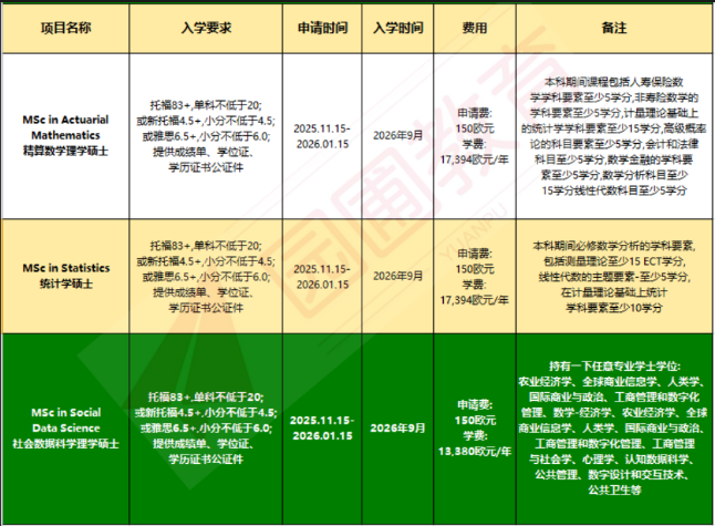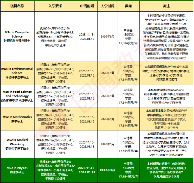 研究生英文授课专业、学费及要求: